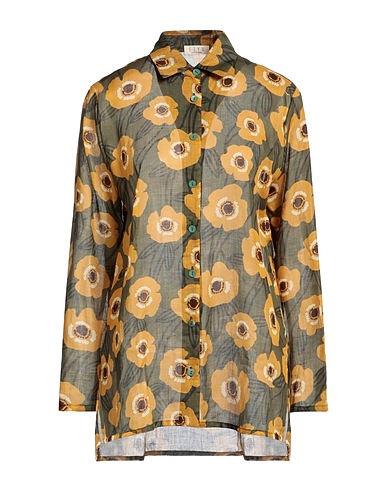 shirt, woven, floral-print, no appliqués, classic collar, long sleeves, unlined, button fastenings, side slit hemline