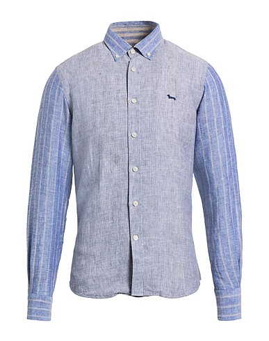 regular-fit shirt, linen, striped, embroidered logo, button-down collar, long sleeves, button fastenings, machine wash or dry clean, do not bleach, tumble dry