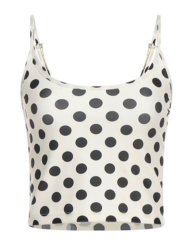 satin, no appliqués, polka-dot, scoop neckline, sleeveless, stretch, top