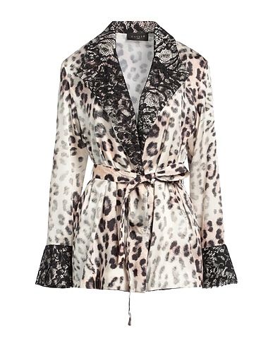 satin, lace, brand logo, belt, leopard-print, lapel collar, long sleeves, snap fastenings, without pockets, machine wash or dry clean, do not bleach, do not tumble dry, kimono