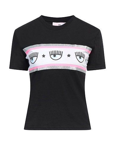 logo-print t-shirt, jersey, glittered, plain colour with print, crewneck, short sleeves, without pockets, hand wash or dry clean, do not bleach, do not tumble dry