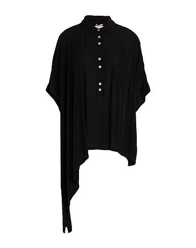 top, crepe, plain colour, no appliqués, classic collar, short sleeves, button fastenings, flap pockets, hand wash or dry clean, do not bleach, do not tumble dry
