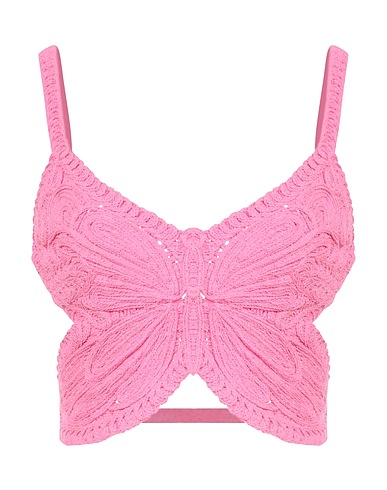 crop top, knitted, lightweight knit, plain colour, no appliqués, deep neckline, sleeveless, 1 button, hand wash or dry clean, do not bleach, do not tumble dry, this brand runs small