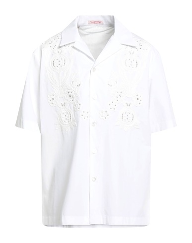 regular-fit shirt, woven, lace, plain colour, no appliqués, lapel collar, short sleeves, button fastenings, contains non-textile parts of animal origin, dry clean, do not bleach, do not tumble dry