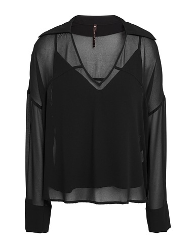 top, crepe, plain colour, brand logo, v-neck, long sleeves, buttoned cuffs, machine wash, do not bleach, do not tumble dry
