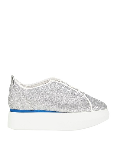 low-top trainers, leather, plain colour, brand logo, glittered, leather lining, lace-up, round toe, flatform, contains non-textile parts of animal origin
