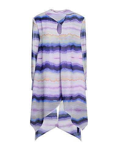 crepe, no appliqués, multicolour pattern, bow collar, long sleeves, buttoned cuffs, fully lined, trapeze style