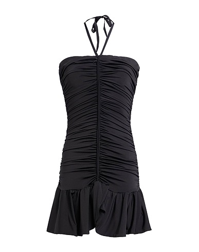 bodycon dress, synthetic jersey, stretchy fabric, plain colour, gathered, brand logo, ruffles, halterneck, sleeveless, unlined, zip fastening, tie fastening, hand wash or dry clean, do not bleach, do not tumble dry, amp up the glamour with chic designer party outfits for your next event or fun night out