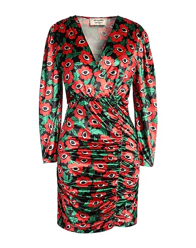velvet, gathered, floral-print, deep neckline, long sleeves, unlined, without pockets, dry clean, do not bleach, do not tumble dry, bodycon dress