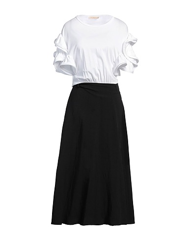 flared dress, jersey, woven, two-tone, ruffles, crewneck, short sleeves, elasticised waist, hand wash or dry clean, do not bleach, do not tumble dry
