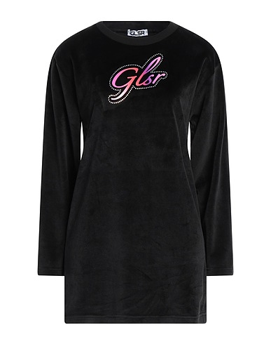 t-shirt dress, chenille, stretchy fabric, plain colour with print, crystals, brand logo, crewneck, long sleeves, unlined, machine wash, do not bleach, do not tumble dry