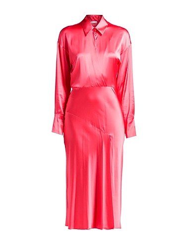 flared dress, satin, stretchy fabric, plain colour, wrap-effect, classic collar, long sleeves, unlined, 1 button, without pockets, dry clean, do not tumble dry