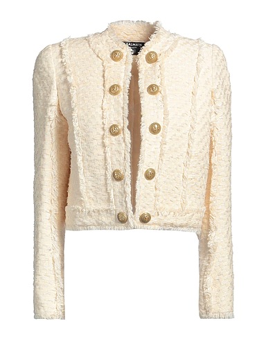 jacket, tweed, hammered, button-embellished, plain colour with appliqués, deep neckline, single-breasted , long sleeves, shoulder pads, snap-fastening cuffs, fully lined, dry clean, do not bleach, do not tumble dry