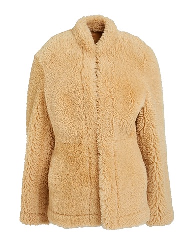 shearling jacket, shearling, no appliqués, plain colour, single-breasted , long sleeves, leather lining, hook fastenings, pockets, contains non-textile parts of animal origin, do not wash, do not tumble dry