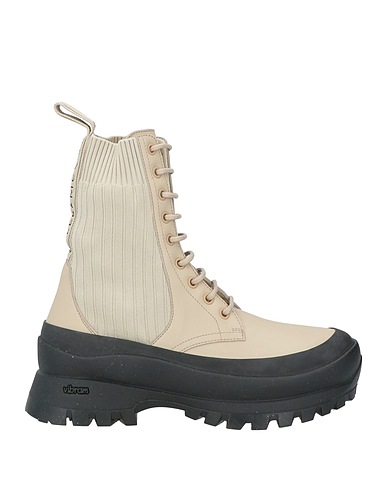 chunky boots, synthetic material, two-tone, brand logo, fabric inner, lace-up, round toe, square heel, lug sole, large sized