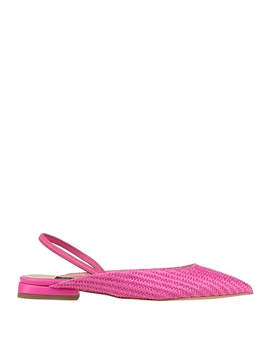 raffia, no appliqués, plain colour, lined interior, elasticised straps, narrow toeline, flat, leather sole, contains non-textile parts of animal origin, slingback ballet flats