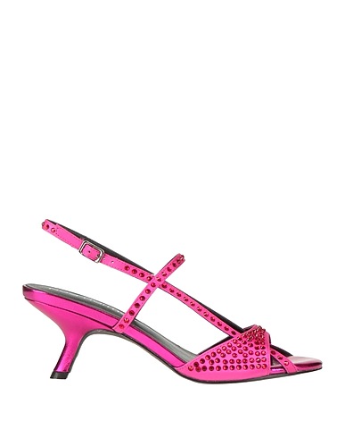 satin, crystals, plain colour with appliqués, leather lining, buckle fastening, round toeline, geometric heel, covered heel, rubber sole, contains non-textile parts of animal origin, ankle strap sandals