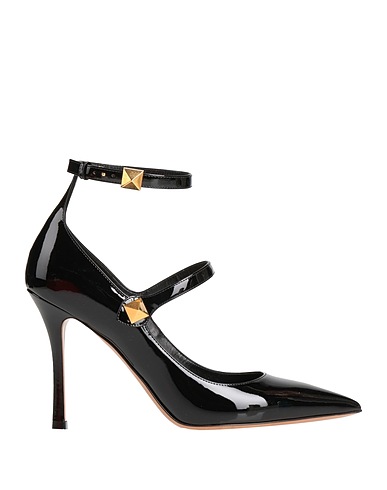 pumps, patent leather, plain colour with appliqués, studs, leather lining, buckle-fastening ankle strap, pointed toe, stiletto heel, covered heel, leather sole, contains non-textile parts of animal origin, amp up the glamour with chic designer party outfits for your next event or fun night out