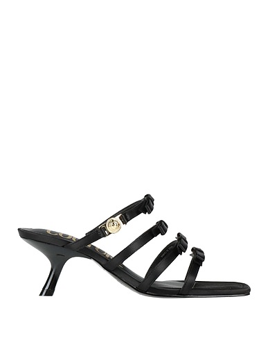 sandals, satin, bow-detailed, brand logo, plain colour with appliqués, fabric inner, square toe, spool heel, rubber cleated sole