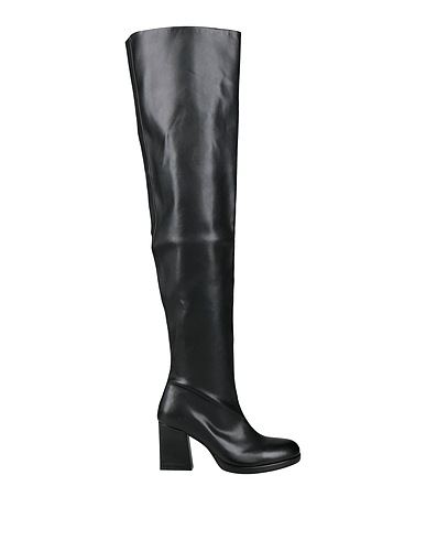 coated fabric, no appliqués, plain colour, leather lining, zip fastening, round toe, square heel, leather/rubber sole, contains non-textile parts of animal origin, over-the-knee boots