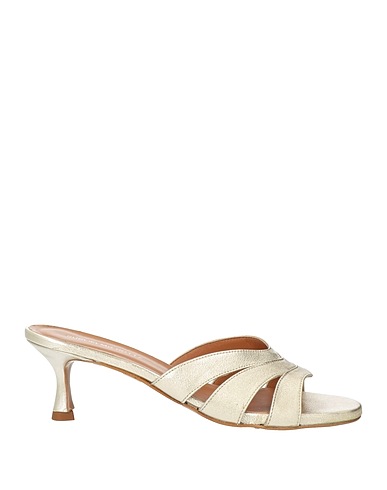 suede, metallic, no appliqués, plain colour, leather lining, round toe, spool heel, covered heel, leather sole, contains non-textile parts of animal origin, slide sandals, large sized