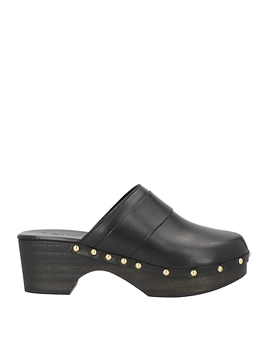 leather, studs, plain colour, leather lining, round toe, square heel, rubber sole, contains non-textile parts of animal origin, mules