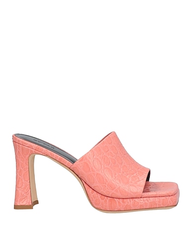 slide sandals, leather, no appliqués, crocodile-print, leather lining, square toe, square heel, leather sole, contains non-textile parts of animal origin