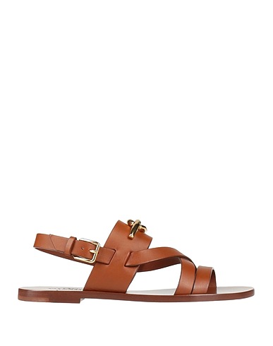ankle strap sandals, leather, brand logo, embellished, plain colour with appliqués, leather lining, buckle fastening, round toe, flat, leather sole, contains non-textile parts of animal origin