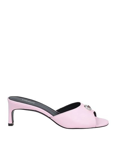 slide sandals, leather, plain colour, brand logo, leather lining, round toe, stiletto heel, leather sole, contains non-textile parts of animal origin