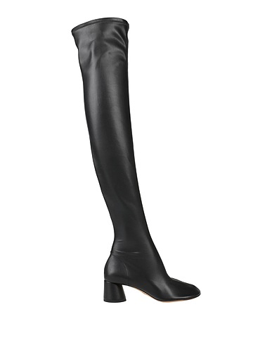 over-the-knee boots, coated fabric, plain colour, no appliqués, leather lining, square toe, geometric heel, leather sole, contains non-textile parts of animal origin, small sized