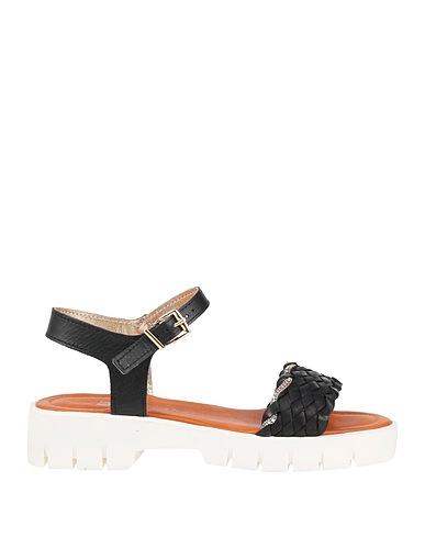 ankle strap sandals, leather, plain colour with appliqués, crystals, leather lining, buckle-fastening ankle strap, round toe, low heel, rubber sole, contains non-textile parts of animal origin