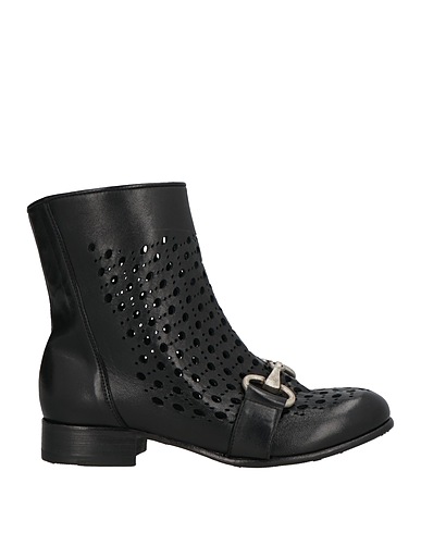 ankle boots, leather, perforated, plain colour with appliqués, embellished, leather lining, round toe, square heel, leather/rubber sole, contains non-textile parts of animal origin