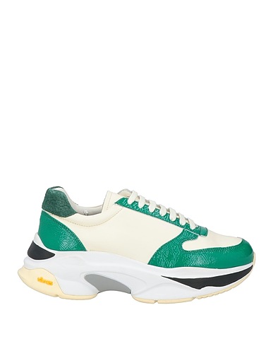 chunky trainers, leather, patent leather, two-tone, no appliqués, leather lining, lace-up, round toe, rubber cleated sole, contains non-textile parts of animal origin