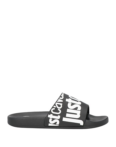 pool slides, plastic, plain colour with appliqués, brand logo, unlined, round toe, flat, rubber sole
