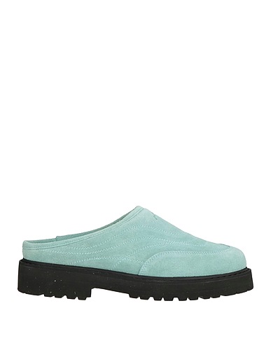 mules, suede, plain colour, no appliqués, leather lining, round toe, flat, rubber sole, contains non-textile parts of animal origin