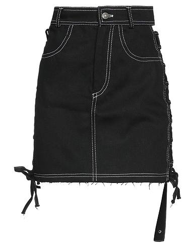 denim, no appliqués, plain colour, coloured wash, high waisted, belt loops, unlined, 1 button, zip fastening, multipockets, flared skirt
