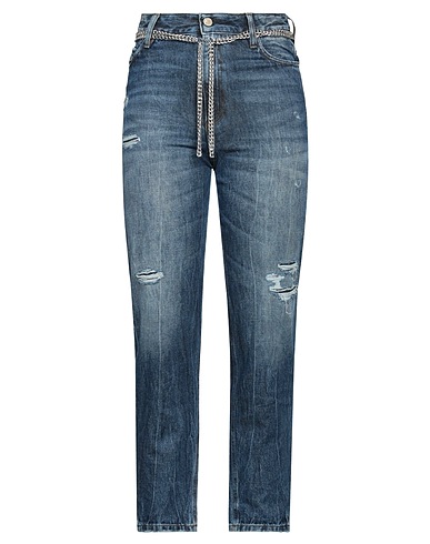denim, torn fabric, faded, belt, plain colour, medium wash, high waisted, belt loops, tapered leg, regular fit, zipper closure, 1 button, five pockets, tapered model