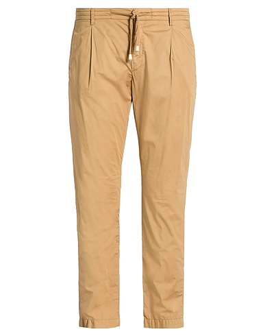 casual trousers, woven, stretchy fabric, plain colour, brand logo, low waisted, elasticised waist, tapered leg, regular fit, zip fastening, button fastenings, slit pockets, welt pockets, machine wash or dry clean, do not bleach, do not tumble dry