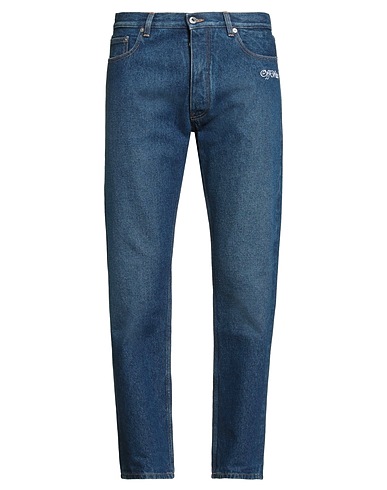 straight-leg jeans, denim, faded, plain colour, embroidered logo, medium wash, mid rise, belt loops, regular fit, button fastenings, five pockets, machine wash or dry clean, do not bleach, do not tumble dry, contains non-textile parts of animal origin