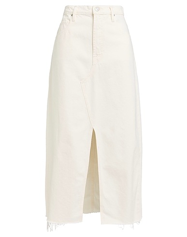 flared skirt, denim, plain colour, no appliqués, coloured wash, belt loops, unlined, zip fastening, 1 button, front slit, fringed hem, multipockets, machine wash, do not bleach, do not tumble dry