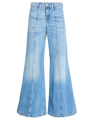 wide-leg jeans, model: d-akii , denim, plain colour, brand logo, light wash, mid rise, belt loops, regular fit, zip fastening, 1 button, pockets, machine wash, do not bleach, do not tumble dry