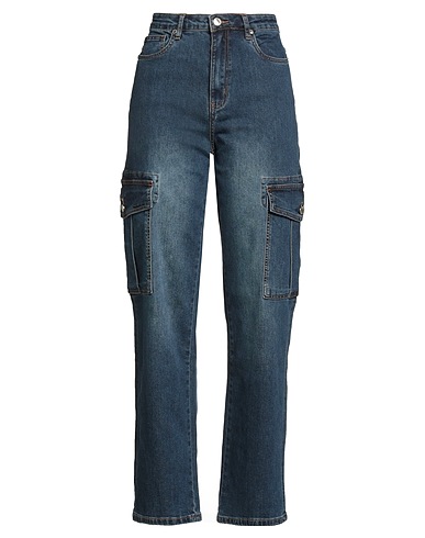 cargo jeans, denim, faded, stretchy fabric, plain colour, brand logo, dark wash, high waisted, belt loops, regular fit, zip fastening, 1 button, multipockets, hand wash, do not bleach, do not tumble dry