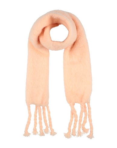 scarf, knitted, brushed-felt, medium-weight knit, fringes, plain colour, dry clean, do not bleach, do not tumble dry