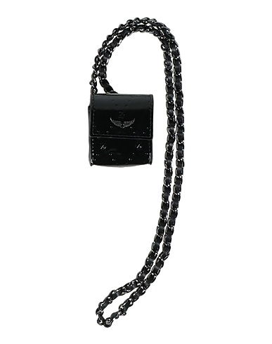 earphone case, patent leather, logo-print, brand logo, snap fastenings, contains non-textile parts of animal origin