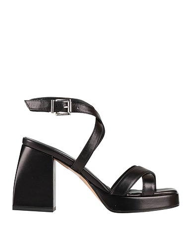 ankle strap sandals, leather, plain colour, no appliqués, leather lining, buckle-fastening ankle strap, square toe, square heel, covered heel, rubber sole, contains non-textile parts of animal origin