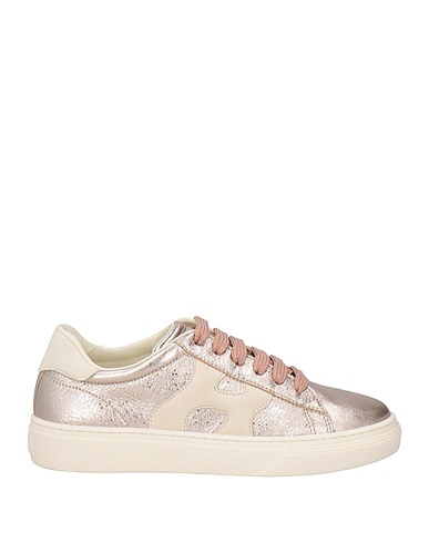 low-top trainers, leather, metallic, plain colour, brand logo, leather lining, lace-up, round toe, rubber cleated sole, contains non-textile parts of animal origin
