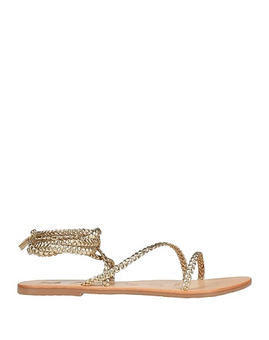 sandals, leather, metallic, plain colour, no appliqués, leather lining, ties at ankle, round toe, flat, rubber cleated sole, contains non-textile parts of animal origin