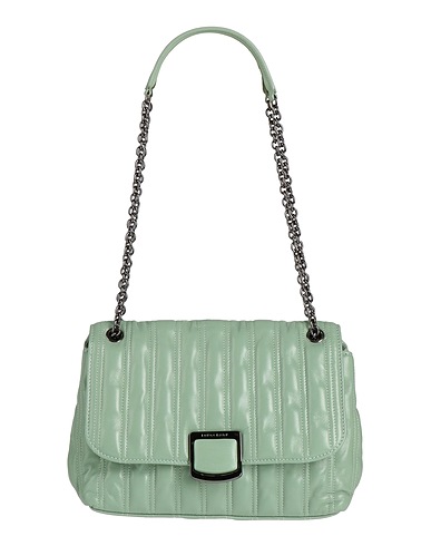 flap bag, leather, quilted, plain colour, brand logo, magnetic fastening, fully lined, double handle, medium size, contains non-textile parts of animal origin