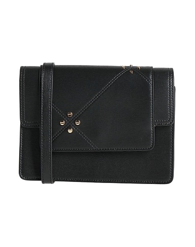 flap bag, leather, plain colour with appliqués, brand logo, studs, magnetic fastening, lined interior, external pocket, leather straps, medium size, contains non-textile parts of animal origin