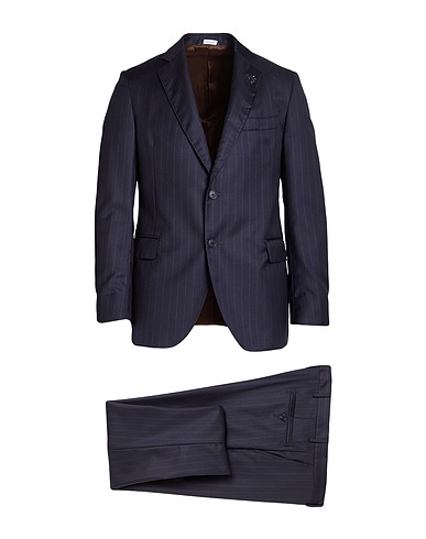single-breasted suit, cool wool, brooch, striped, lapel collar, long sleeves, fully lined, button fastenings, multipockets, dry clean, do not bleach, do not tumble dry